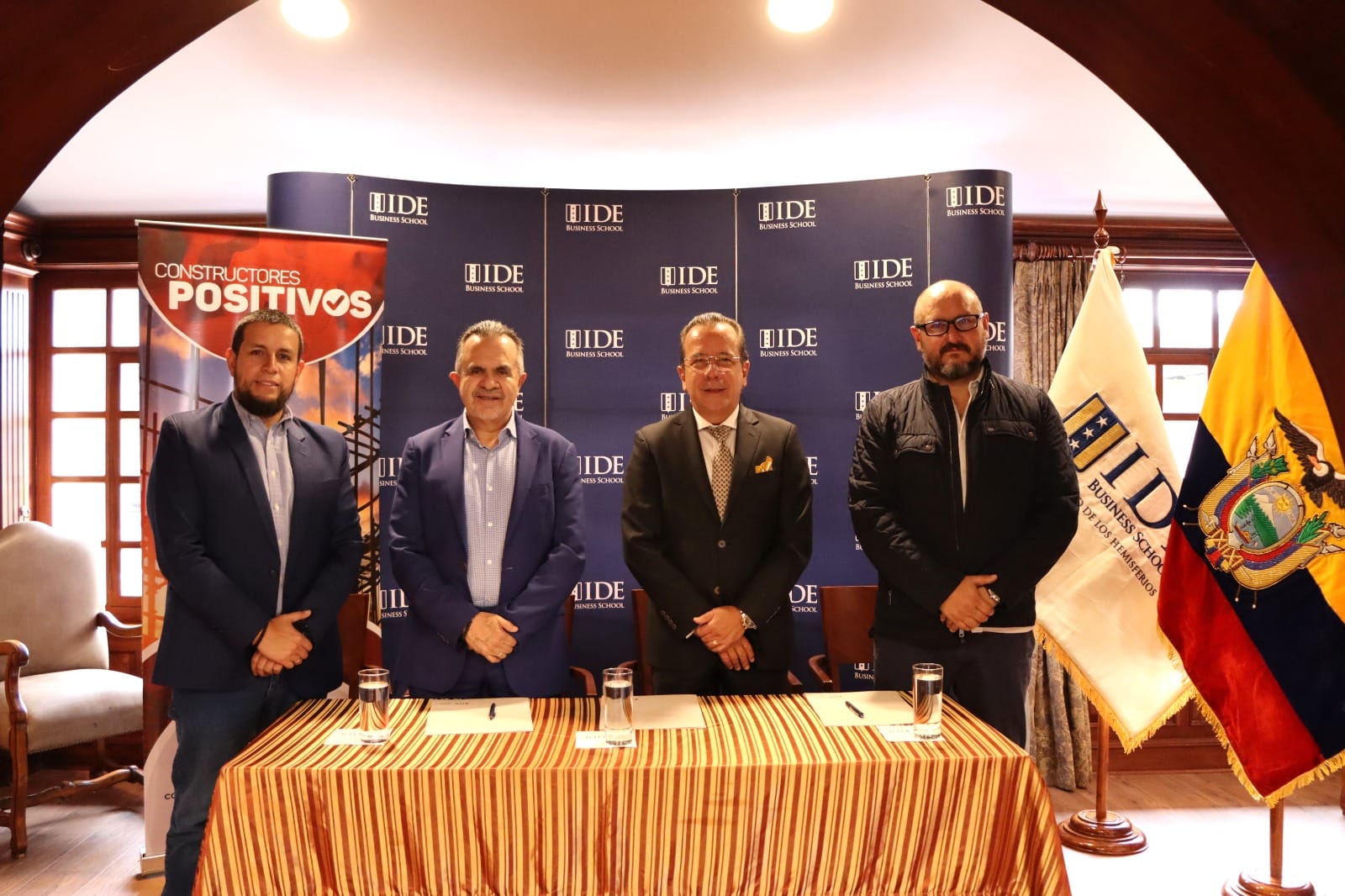 Quito/Guayaquil, septiembre del 2025.- El IDE Business School y Constructores Positivos suscribieron un convenio destinado a impulsar la formación empresarial en el Ecuador, con especial atención a las compañías del sector de la construcción con enfoque sustentable. Esta unión reafirma la apuesta del IDE por el valor de las alianzas estratégicas que transforman contextos, fortalecen sectores y preparan líderes con visión de largo plazo.