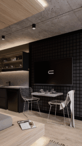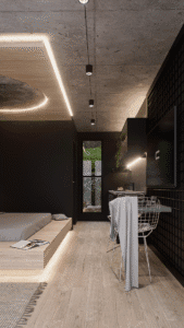 AndMa es un conjunto de suites de 30 m², diseñadas en 2025 como respuesta a las nuevas formas de viajar y habitar. Cada unidad ofrece una experiencia estética compacta, pensada para estadías cortas a través de la plataforma Airbnb, donde la funcionalidad se encuentra con el diseño emocional. El estilo industrial se expresa en una paleta neutra que dialoga con texturas naturales. El corazón conceptual de este proyecto es un elemento escultórico de inspiración lunar ubicado sobre la cama, que genera una atmósfera onírica y contemplativa, rompiendo con la rigidez del concreto. El diseño interior apuesta por la eficiencia espacial sin renunciar al carácter. Cada suite se convierte en un refugio introspectivo, cómodo y visualmente estimulante, logrando una experiencia inmersiva que trasciende lo funcional.