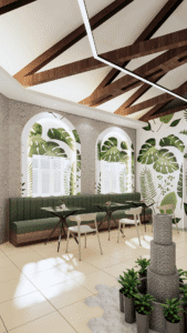 Cafetería Amazonas Express nace como una extensión ágil de una cafetería consolidada, diseñada exclusivamente para pedidos para llevar sin sacrificar calidad ni experiencia. El reto fue claro: condensar el sabor, el concepto y la calidez de la marca original en un espacio compacto pero envolvente. Se apostó por una estética autóctona-contemporánea que evoca origen y tradición, utilizando un cielo verde vegetal representando la hoja de achira (hoja utilizada para los envueltos tradicionales). El diseño funcional permite fluidez operativa para el personal y claridad visual para el cliente. Cada elemento está pensado para que el visitante se lleve más que un café: una experiencia coherente con los valores de la marca, incluso en tránsito.