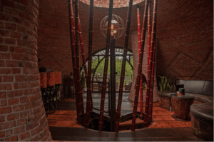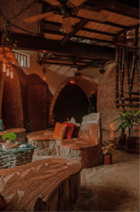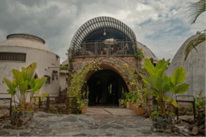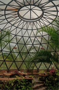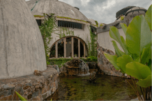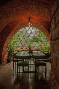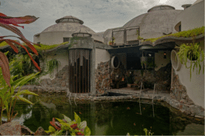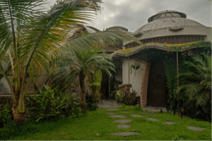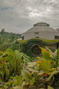 Es importante destacar la forma constructiva. Hiperadobe, el cual usa los recursos de la tierra ya que el 80% de las paredes es tierra compactada, con un grosor de 50cms. Gracias a esto las temperaturas en la casa se mantiene, contamos además con pozos canadienses, los cuales inyectan aire frio a la casa atreves de un sistema subterráneo de tuberías. La casa está pensada con el manejo de temperaturas de aire, ya que el aire más frio queda por debajo expulsando por los skylites el aire caliente. Cabe recalcar la adicion de techos verdes que ayudan con los cambios de temperatura.
