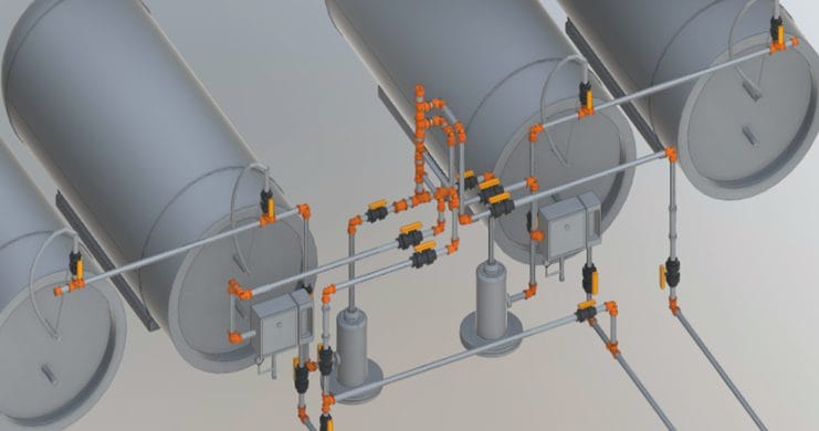 A partir de la documentación original en planos 2D de la PTAP Calderón, el equipo de EPMAPS desarrolló los modelos BIM de cada una de las disciplinas y de las principales estructuras del proyecto, entre ellas los sistemas de cloración y dosificación, los reservorios de agua cruda y agua potable, la cisterna y estación de bombeo, el tanque de coagulante y el edificio administrativo. Para este proceso se utilizó Autodesk Revit, lo que permitió generar modelos de información georreferenciados e integrarlos en un único modelo de coordinación. La gestión del proyecto se realizó de manera centralizada en el Entorno Común de Datos (CDE) de EPMAPS, Autodesk Construction Cloud (ACC), utilizando el módulo Docs como repositorio único de información y Model Coordination como habilitador de una colaboración efectiva y continua entre las distintas especialidades.