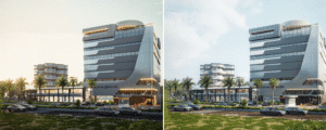 El complejo Equilibrium se presenta como una estructura moderna e imponente, cuya estética vanguardista se integra cuidadosamente con el entorno urbano circundante. La planificación arquitectónica ha considerado meticulosamente la funcionalidad de cada área, desde los consultorios externos hasta las unidades de cuidados intensivos, garantizando flujos de pacientes y personal eficientes y seguros. La incorporación de luz natural abundante, espacios amplios y ventilados, y acabados de alta calidad contribuyen a crear una atmósfera serena y acogedora, que dista del ambiente tradicionalmente frío y aséptico de los centros médicos.