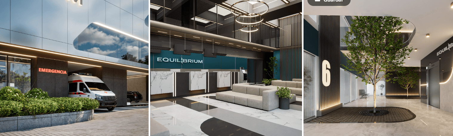 Equilibrium, ubicado en la vía Pajonal de Machala, es un centro médico de primer nivel con consultorios, emergencias, quirófanos, UCI y terrazas roof top/sky rooftops. Su diseño moderno prioriza la funcionalidad y el bienestar, con luz natural y espacios amplios. Los consultorios ofrecen atención especializada y multidisciplinaria. La unidad de emergencias está equipada para respuesta inmediata, cercana a diagnóstico e intervenciones. Los quirófanos son de última generación con altos estándares de bioseguridad.