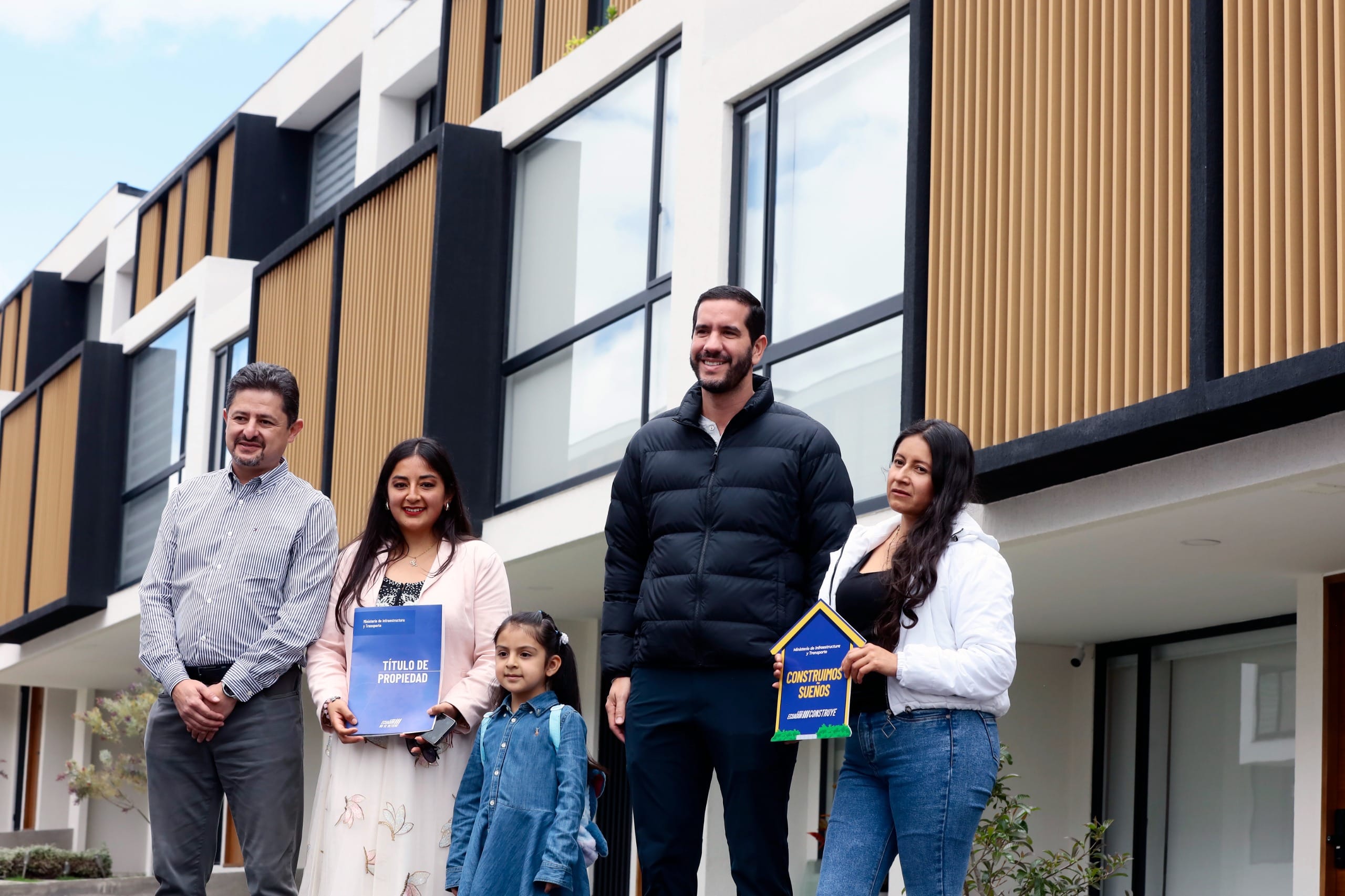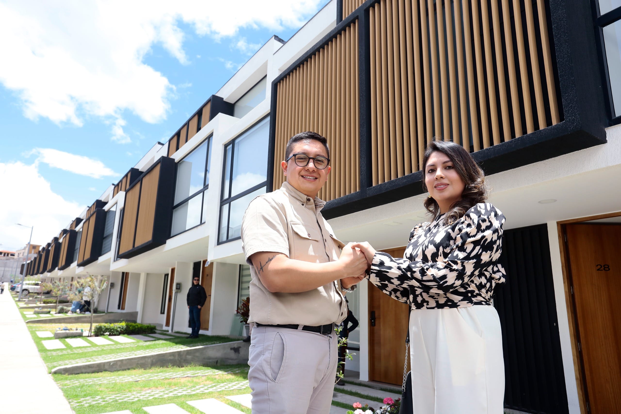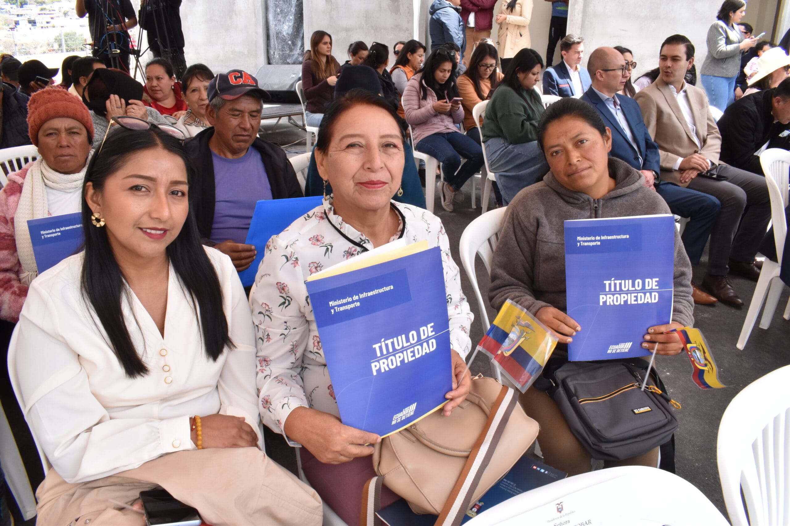Ambato, Tungurahua. Familias de Tungurahua hoy materializaron su sueño de tener una vivienda propia. El ministro de Infraestructura y Transporte (MIT), Roberto Luque, entregó a dos beneficiarias las llaves de sus nuevas casas en el proyecto habitacional Condominio Valle Alto, en la parroquia La Península (Ambato), a las que accedieron gracias al programa gubernamental «Tu Casa Miti-Miti». Adicionalmente, 14 familias de Ambato, Mocha, Píllaro y Tisaleo recibieron sus viviendas 100 % subvencionadas por el Gobierno, y se entregaron 49 títulos de propiedad.