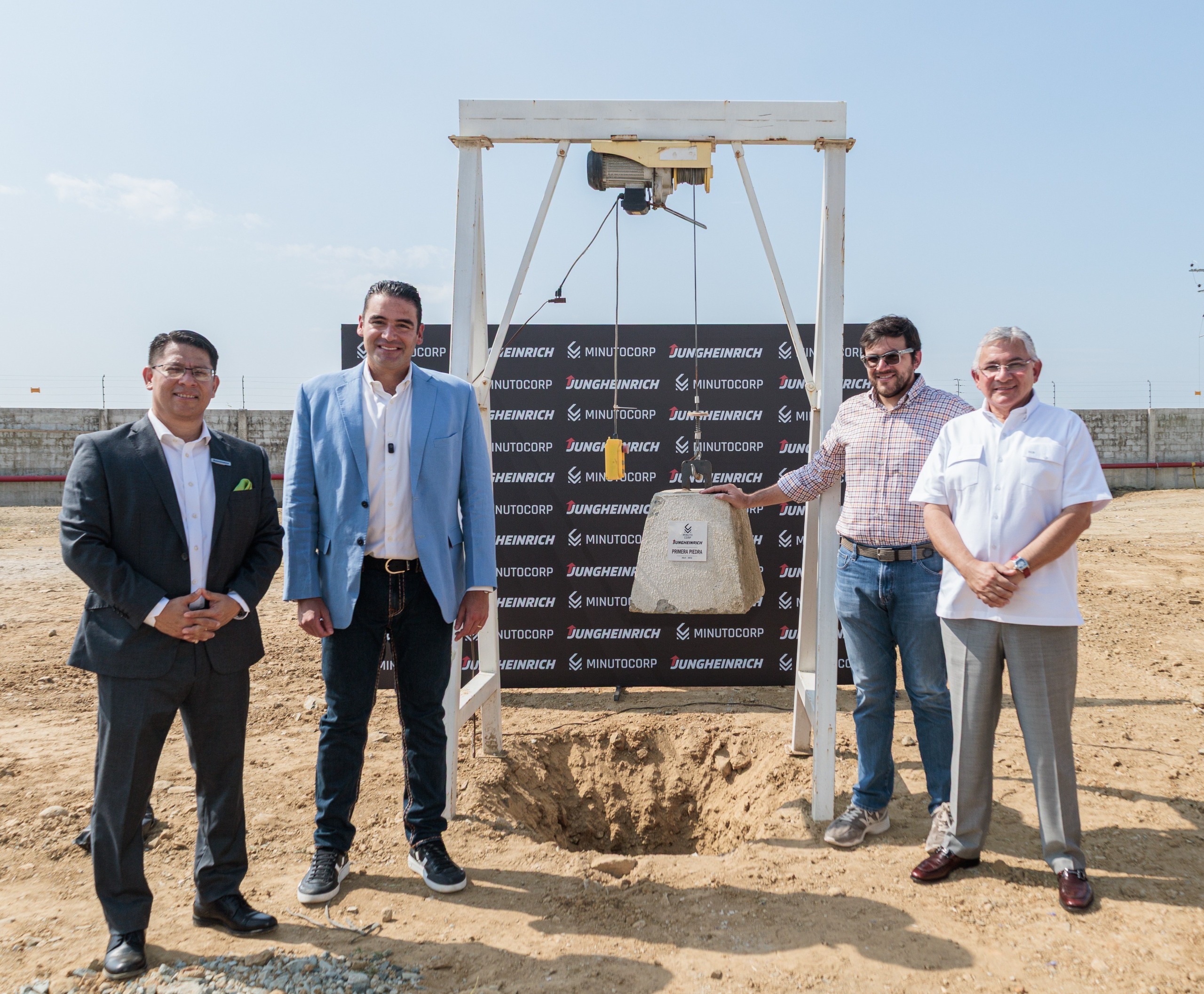 Samborondón, 13 de abril de 2026.- Minutocorp y Jungheinrich colocaron la primera piedra de la nueva matriz en ALMAX Plus, ubicada en el km 14.5 de la vía a Samborondón, marcando un nuevo hito orientado a la innovación en soluciones logísticas, optimización de almacenamiento y movilidad inteligente.