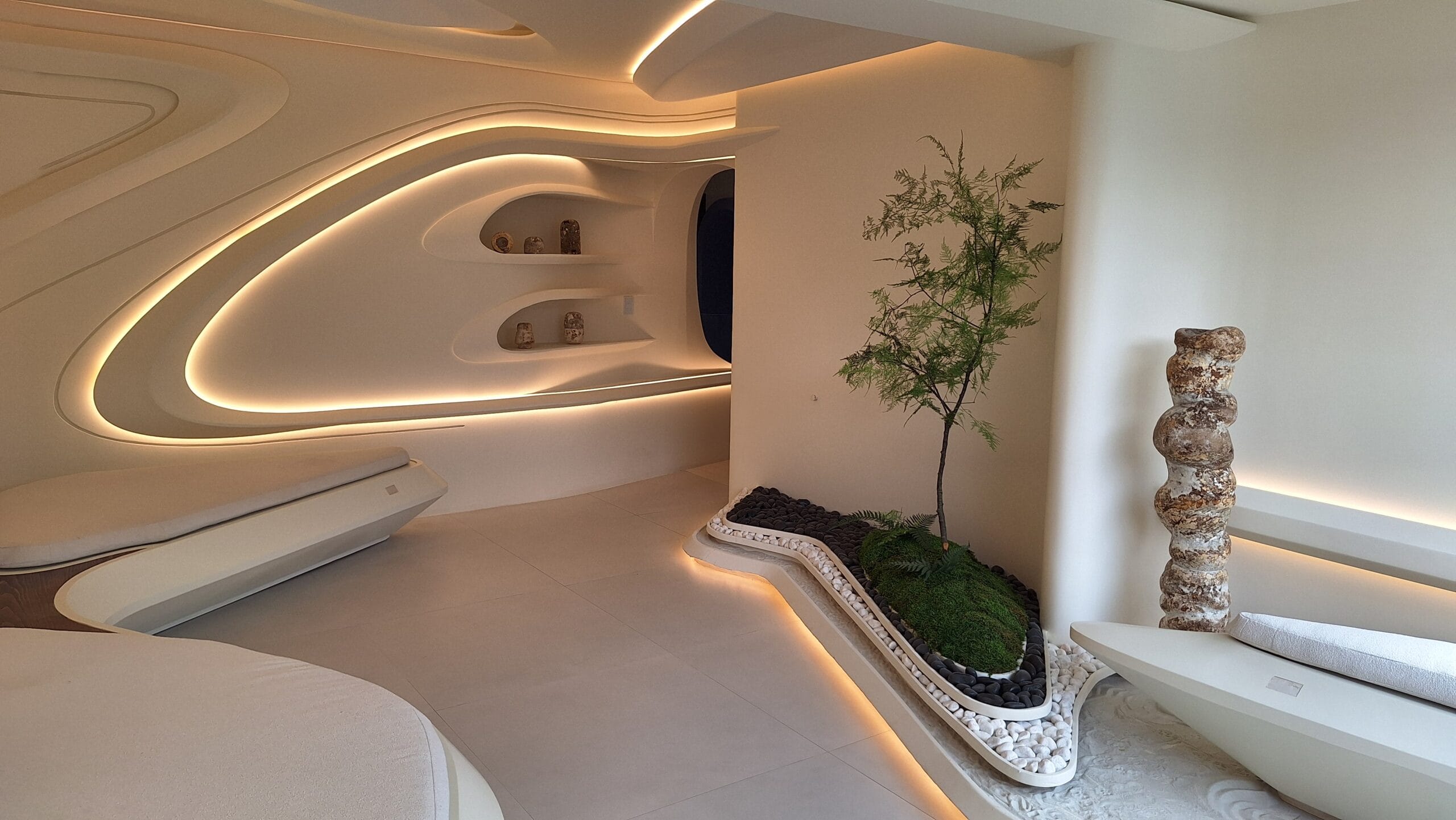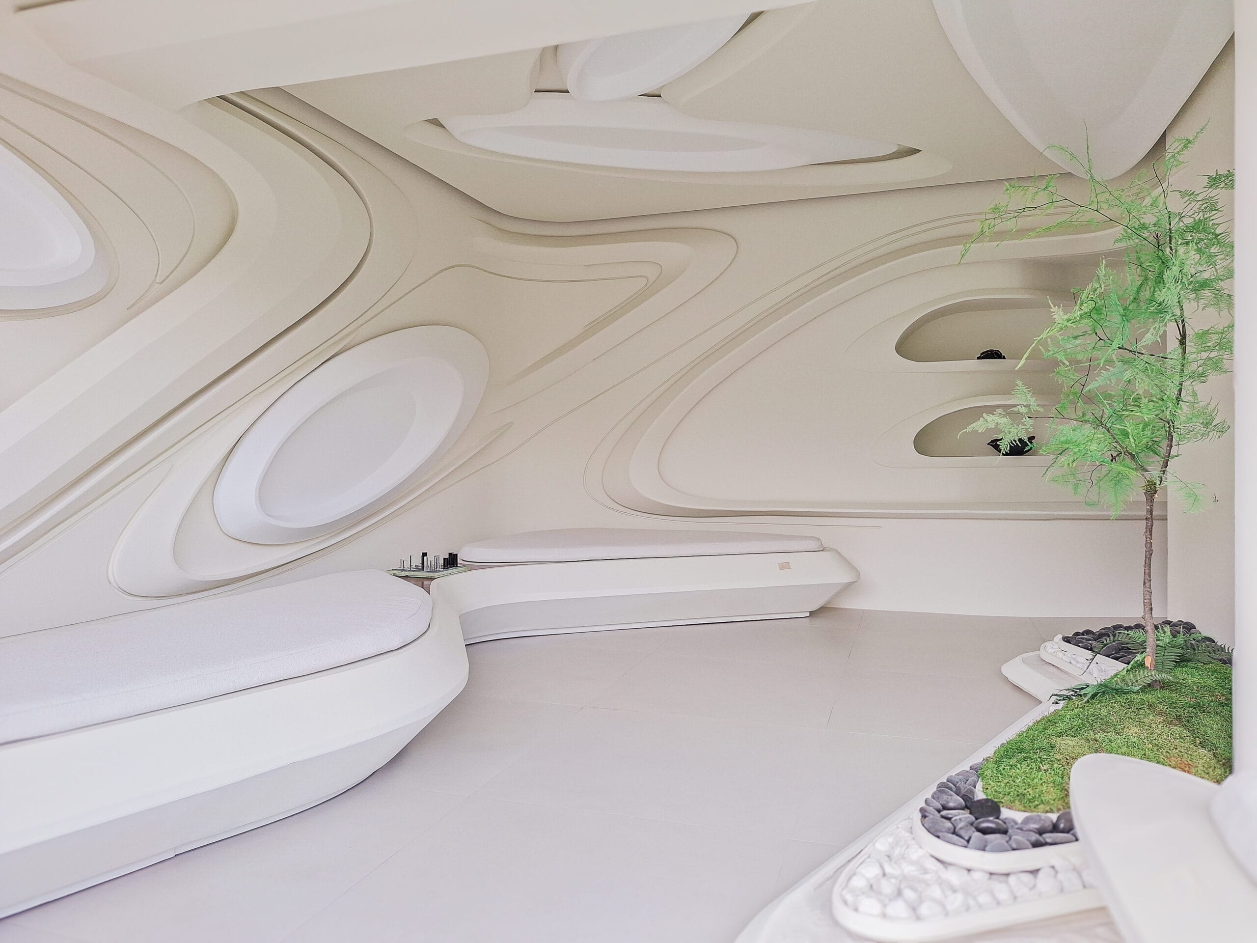 Líneas formales derivadas de patrones naturales, reinterpretados de manera contemporánea. Un espacio que provoca la emoción, genera curiosidad y cuestiona la manera de pensar y hacer las cosas.